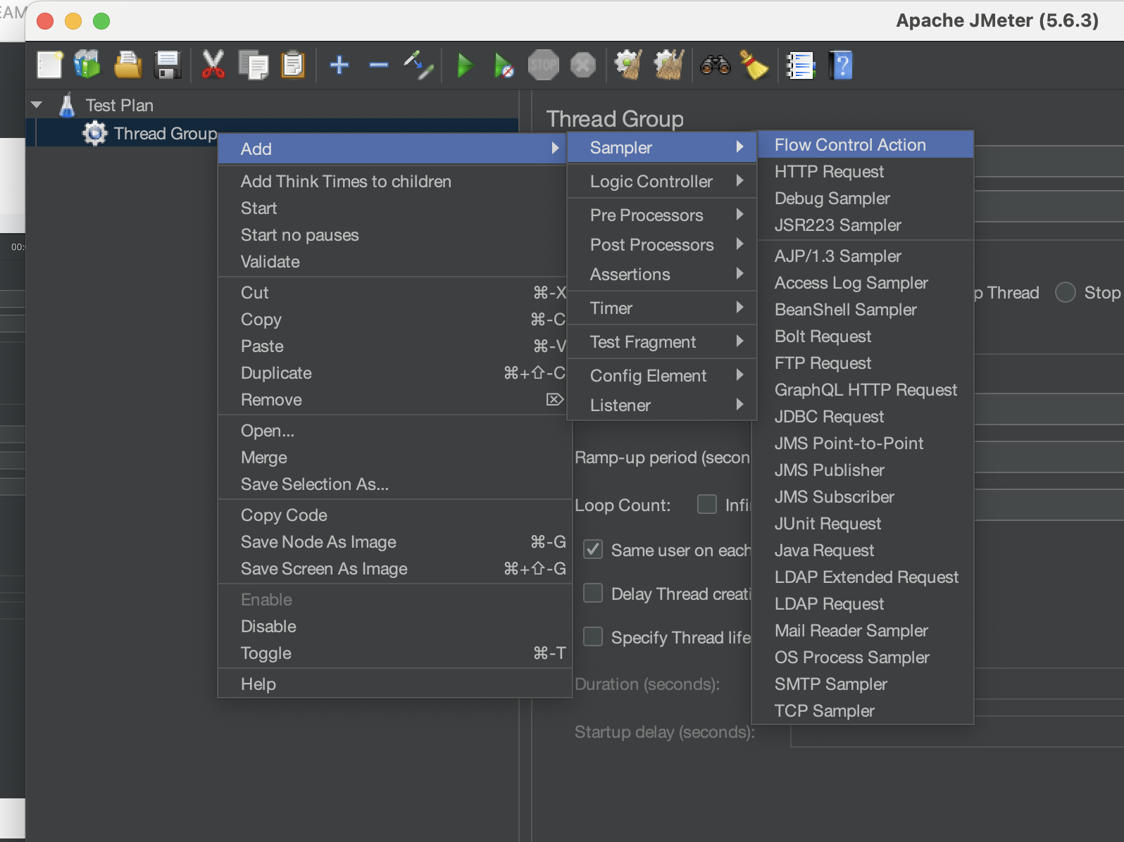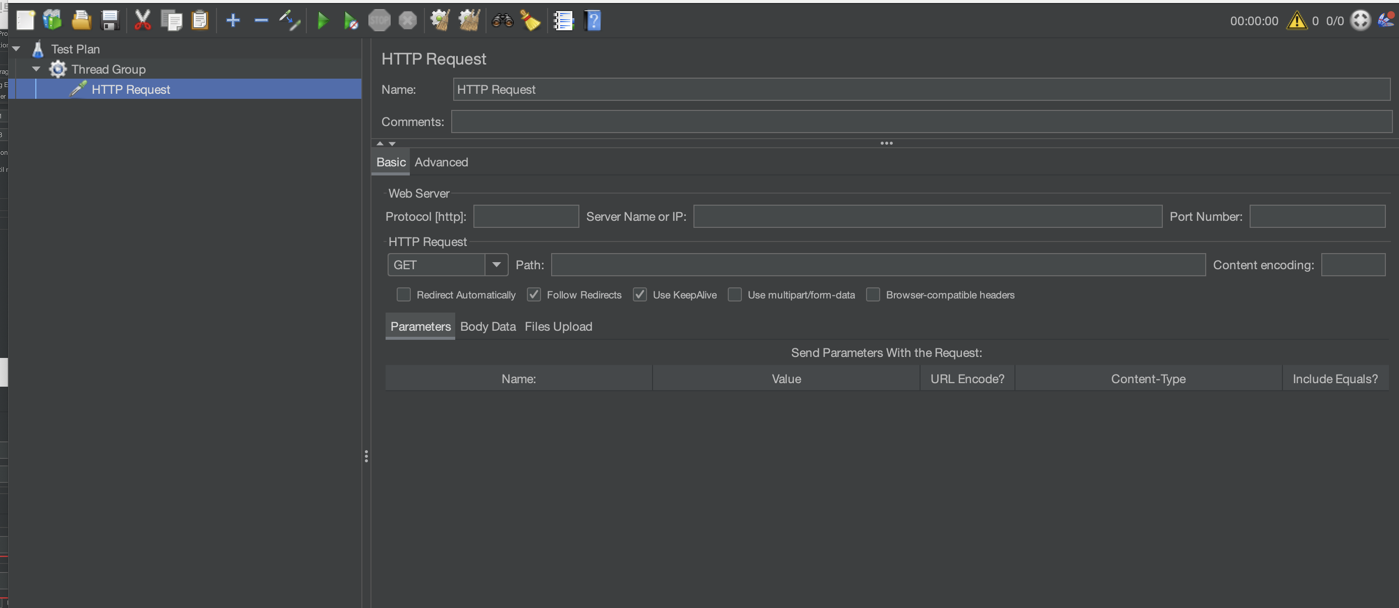 Thread Group오른쪽 클릭, Add -> Sampler -> HTTP Request로 Http 요청을 작성해준다