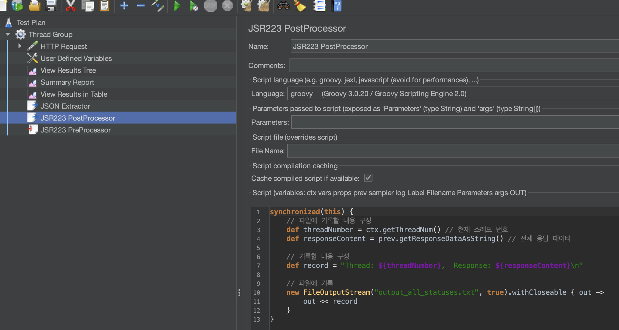 위 사진과 같이 JSR223 PostProcessor 에 groovy코드를 넣어주면 알아서 파싱해서 파일로 저장해준다!!!