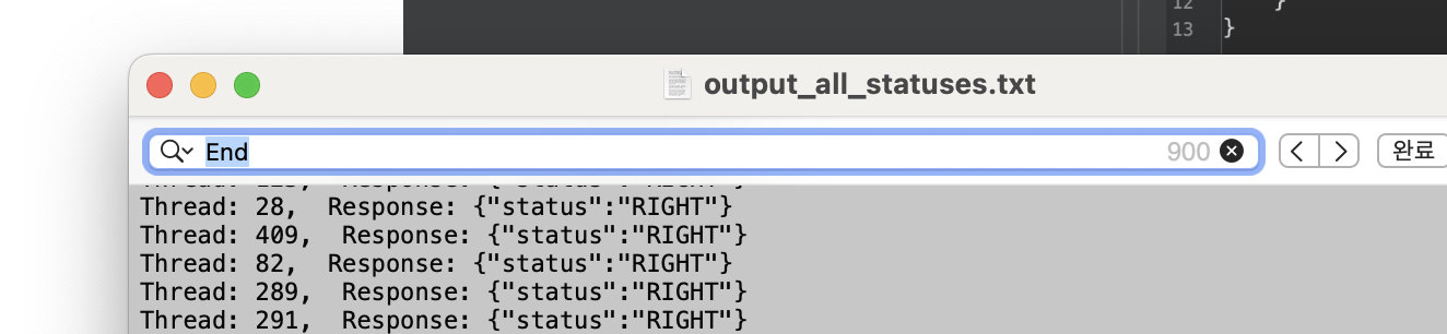 100명만 Right를 반환반고, 나머지는 퀴즈가 마감되었기에 End를 반환받는다!!!