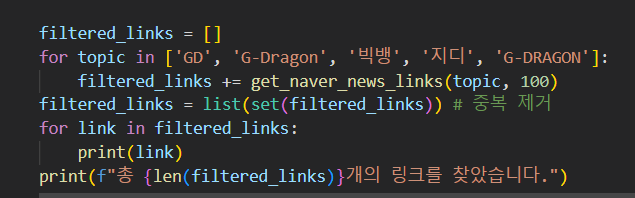 아무 뉴스 링크나 상관없다. 본인만의 방식으로 원하는 주제의 링크들을 가지고 오자.