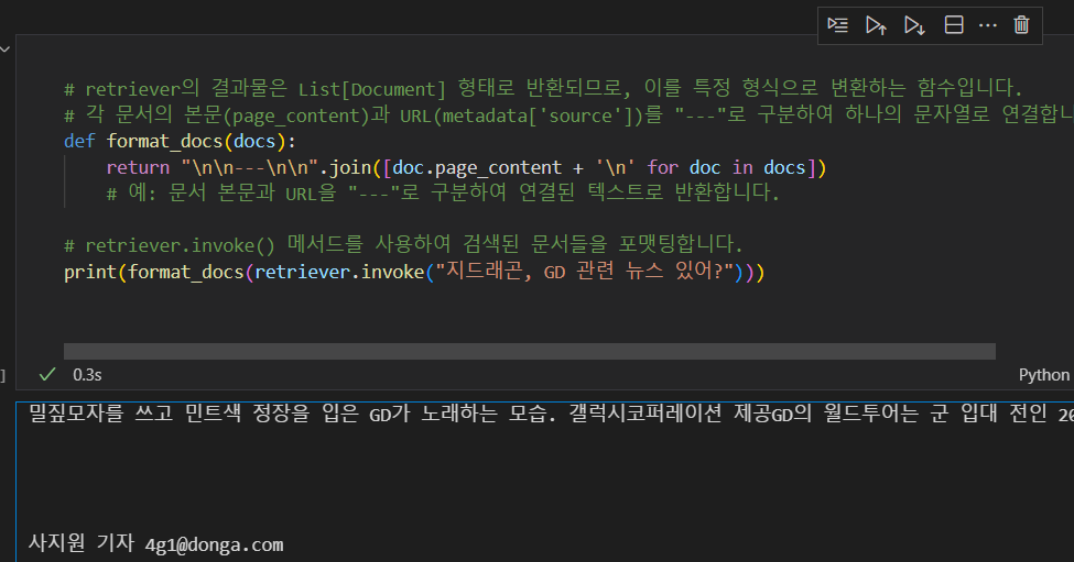 이제 Chroma DB에서 꺼내와서 문서본문을 참고할 수 있게 형식화 하는 함수 까지 마쳤다.