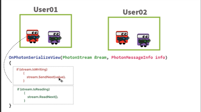 계속해서 변화하는 어떤 것을 네트워크를 통해 동기화 시키려면 OnPhotonSerializeView()를 사용해야한다.