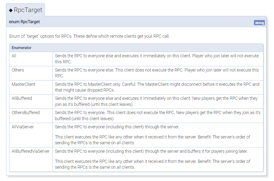 실행할 수 있게하는 프로세스 간 통신 기술이다. 게임에 적용해서 말하자면 같은 룸에 있는 다른 유저(클라이언트)의 함수를 실행하는 것이다.