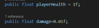 playerHealth는 말그대로 플레이어의 체력이고 damage는 총알 한개의 데미지이다.