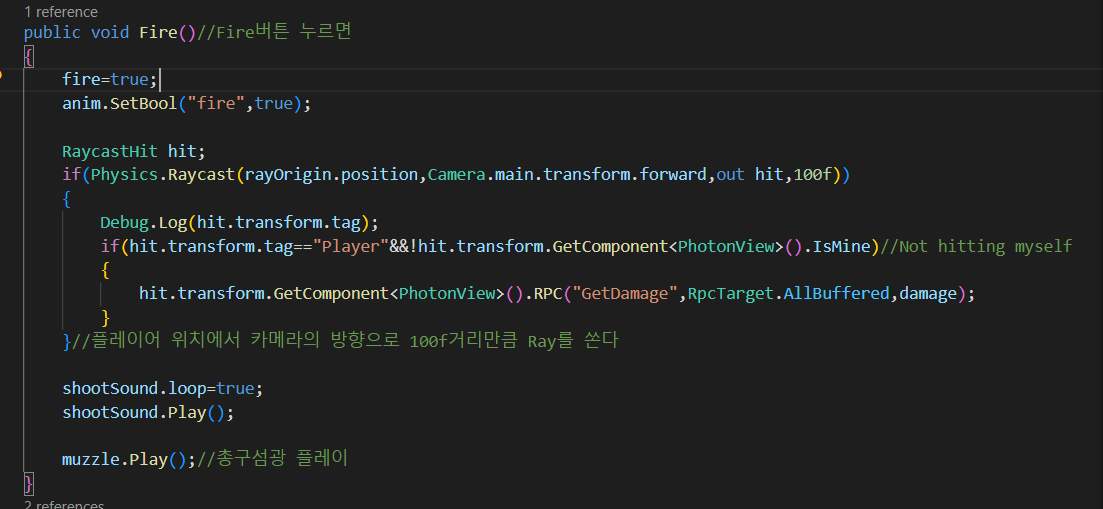 같은 스크립트의 Fire()함수를 아래와 같이 수정한다