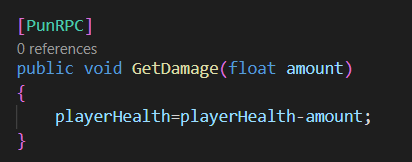 한마디로 여기서는 Ray를 맞은 플레이어는 RPC에 의해 "GetDamage" 라는 함수를 실행한다.
